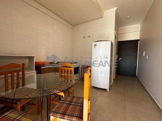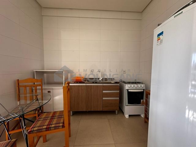 1 banheiro social, cozinha, sala de estar, 1 sacada, 1 vaga de garagem, churrasqueira, mobília (SEMI-MOBILIADO), elevador, fundos.