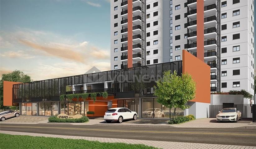2 dormitórios sendo 1 suíte, 1 banheiro social, cozinha, área de serviço, sala de estar, 1 sacada, 1 vaga de garagem, churrasqueira, antena coletiva, elevador, gás central, jardim, estacionamento, playground, portaria, salão de festas, frente, churrasqueira no prédio, piscina no prédio.