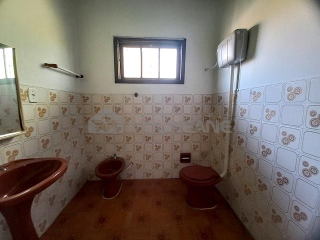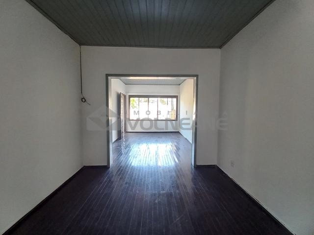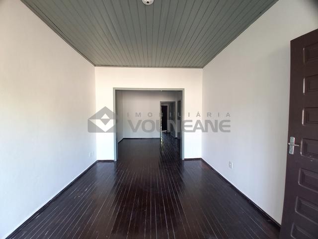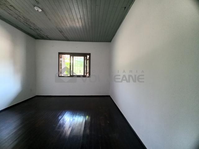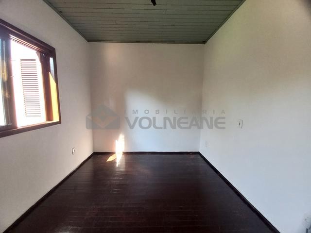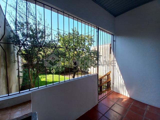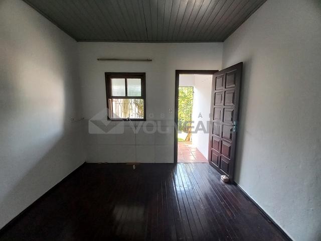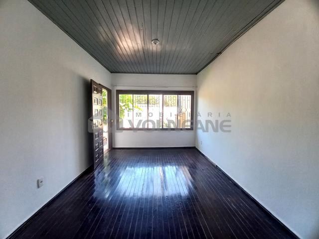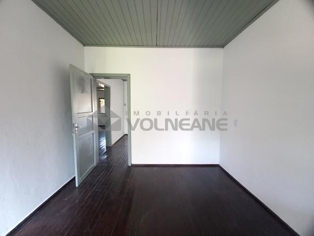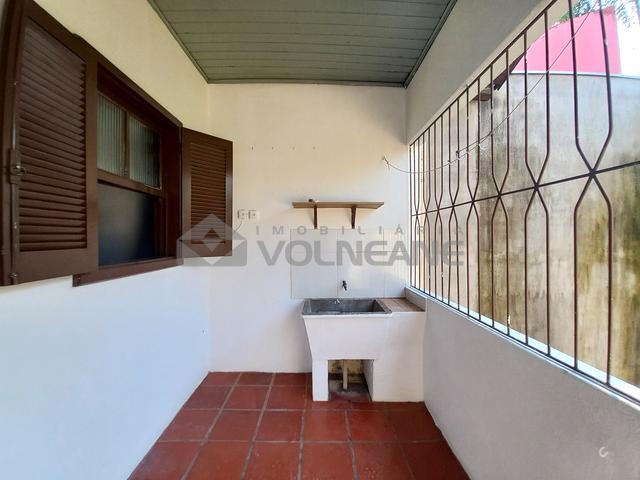 3 dormitórios, 1 banheiro social, 1 vaga de garagem, área de serviço, churrasqueira, cozinha, quintal, pátio, sala de estar, sala de jantar, teto de madeira, cercado com grade, frente.