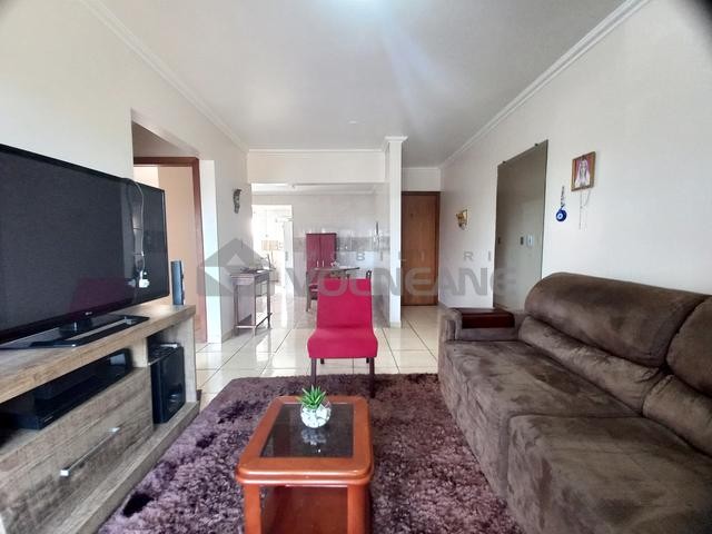 2 dormitórios, 1 banheiro social, cozinha, área de serviço, sala de estar, 1 sacada, 1 vaga de garagem, churrasqueira, mobília (TOTALMENTE MOBILIADO), frente.