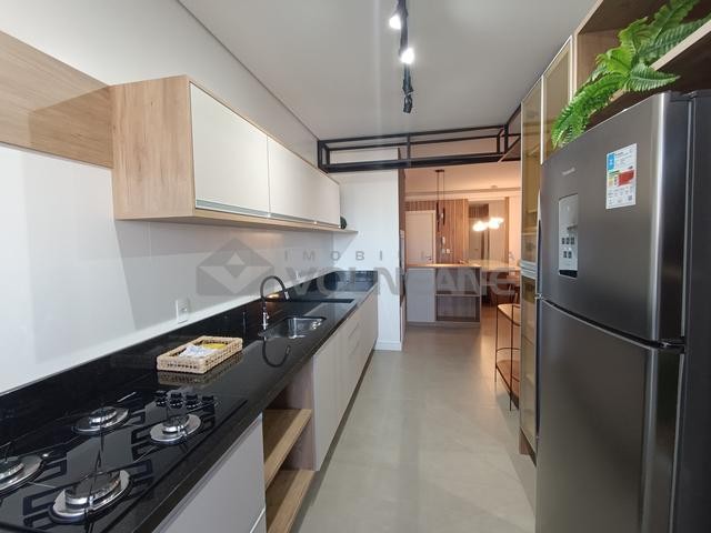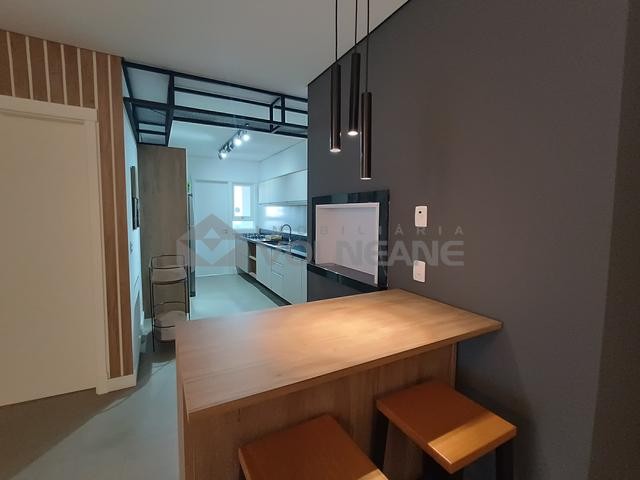 2 dormitórios, 1 banheiro social, cozinha, área de serviço, sala de estar, 1 sacada, 1 vaga de garagem, churrasqueira, mobiliado, elevador, lateral.