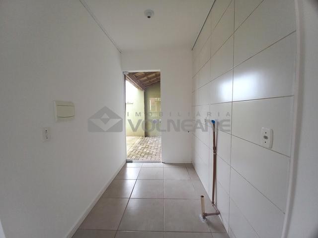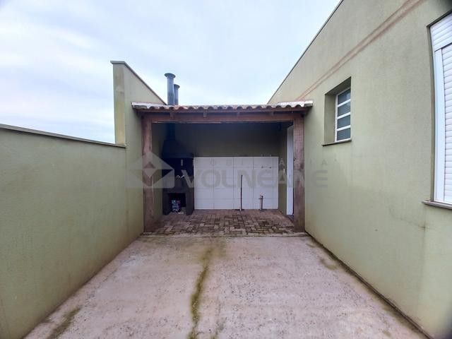 2 dormitórios, 1 banheiro social, 1 vaga de garagem, área de serviço, churrasqueira, quintal, piscina, sala de estar, teto em laje, frente.