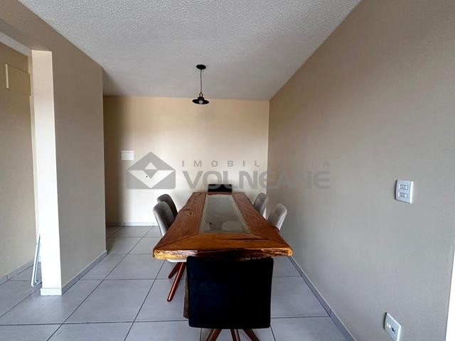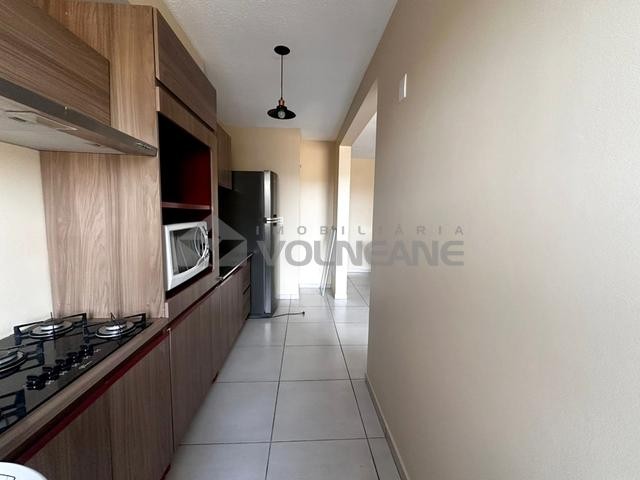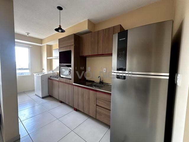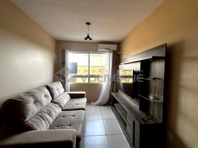 2 dormitórios, 1 banheiro social, cozinha, área de serviço, sala de estar, 1 vaga de garagem, mobília (MOBILIADO), frente.