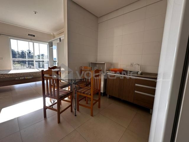 1 banheiro social, cozinha, sala de estar, 1 sacada, 1 vaga de garagem, churrasqueira, mobília (SEMI-MOBILIADO), elevador, fundos.