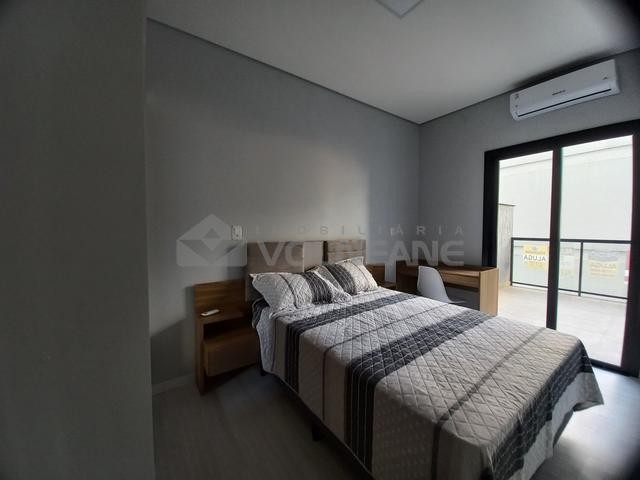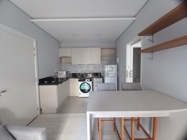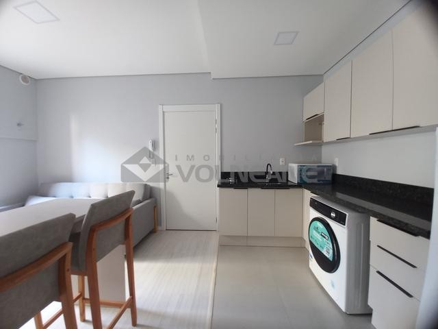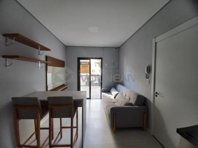 1 dormitório sendo 1 suíte, 1 banheiro social, cozinha, área de serviço, churrasqueira, mobiliado, lateral.