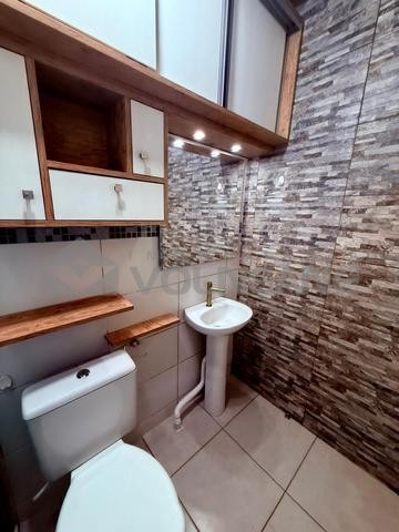 1 banheiro social, 2 vagas de garagem, área de serviço, churrasqueira, cozinha, lavanderia, mobília (Cozinha projetada com bancada para café), pátio, sala de estar, sala de jantar, playground, ar condicionado, teto em laje, cercado com muro, frente.