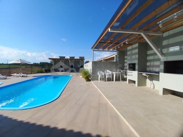 2 dormitórios, 1 banheiro social, 1 vaga de garagem, área de serviço, churrasqueira, cozinha, quintal, piscina, sala de jantar, teto em laje, frente.